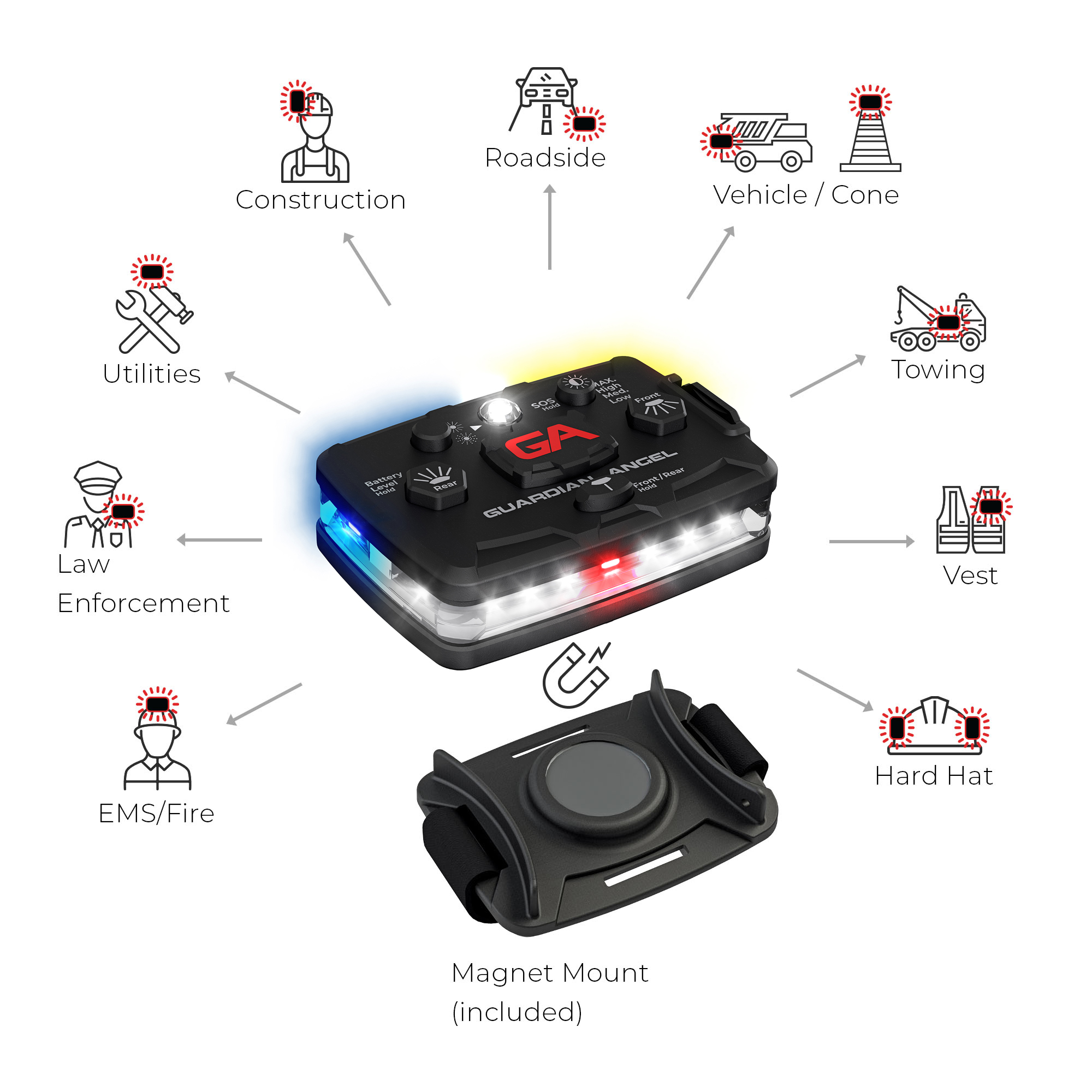 • Patented built-in Magnet Mounting System works with ALL Guardian Angel mounts