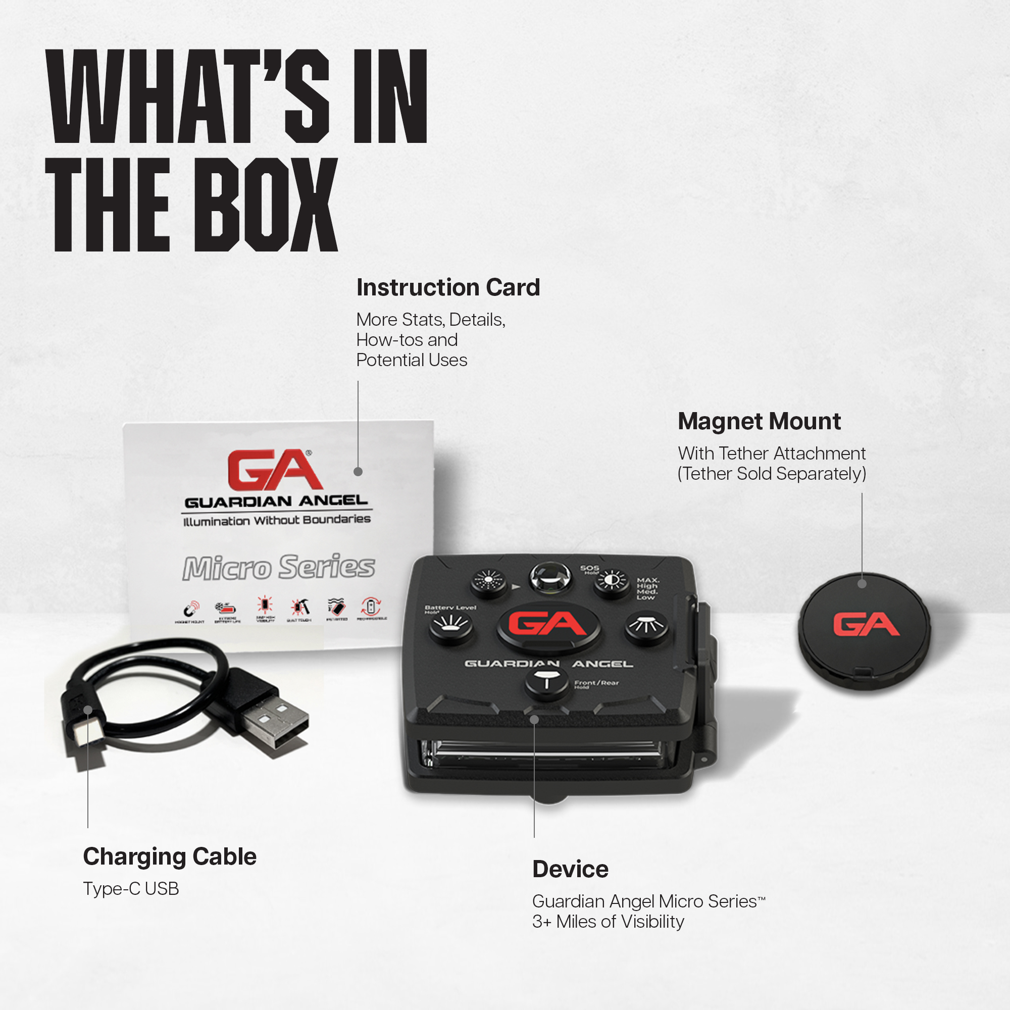 - All Guardian Angel lights, including our Micro Series™ feature a powerful, built-in magnet that allows you to attach it quickly and confidently to nearly any surface and ALL Guardian Angel magnetic mounts.